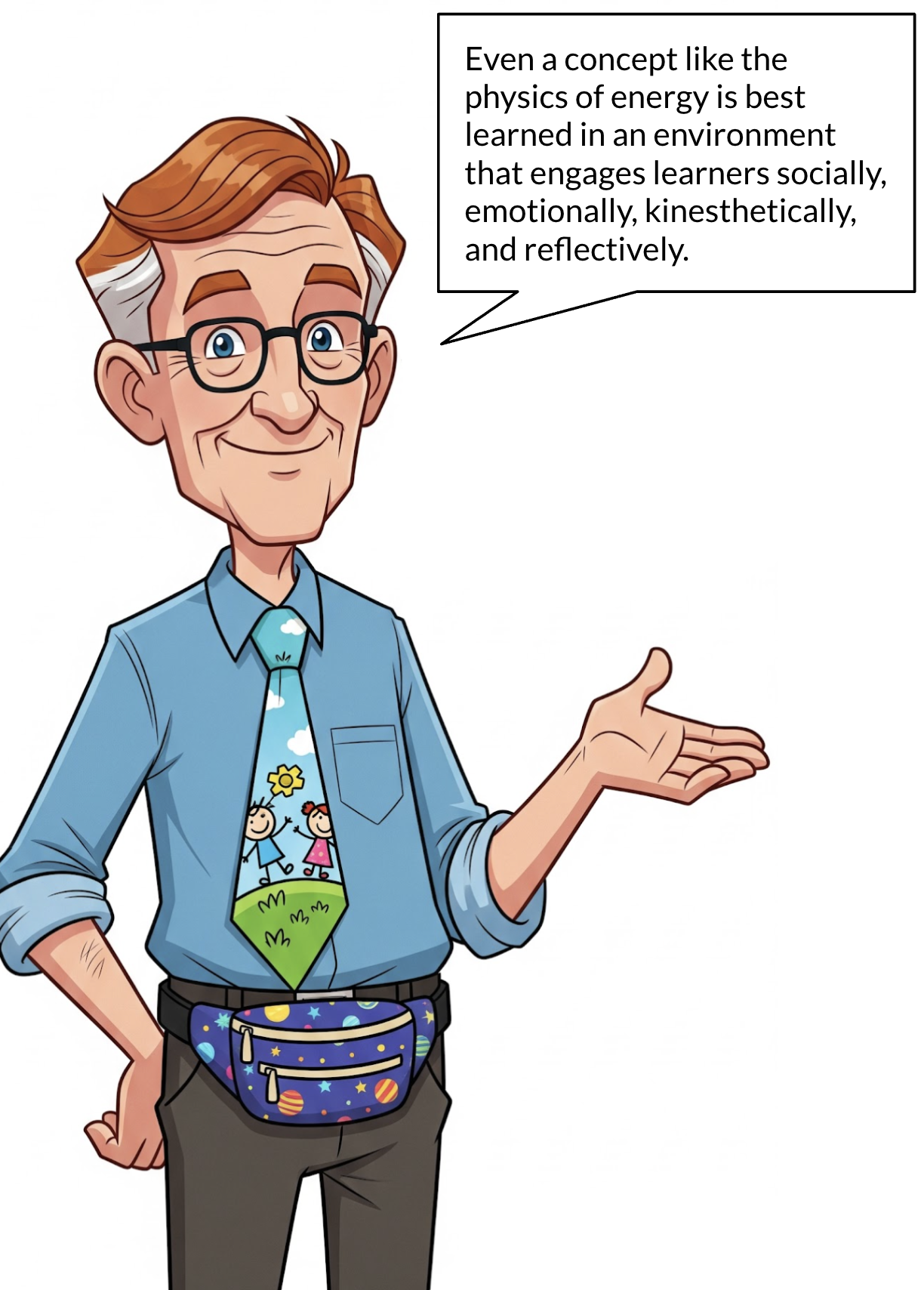 Mental development involves the whole human. Even a concept like the physics of energy is best learned in an environment that engages learners socially, emotionally, kinesthetically, and reflectively.